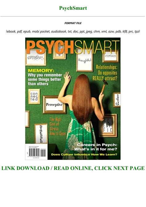 PsychSmart Ebook Doc By Click Button. PsychSmart Ebook it’s easy to recommend a new book category such as Novel, journal, comic, magazin, ect. You see it and you just know that the designer is also an author and understands the challenges involved with having a good book. You can easy klick for detailing book and you can read it online, even you can download it