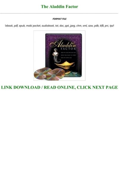 Read Online The Aladdin Factor Ebook Kindle Editon By Click Button. The Aladdin Factor Ebook it’s easy to recommend a new book category such as Novel, journal, comic, magazin, ect. You see it and you just know that the designer is also an author and understands the challenges involved with having a good book. You can easy klick for detailing book and you can read it online, even you can download it